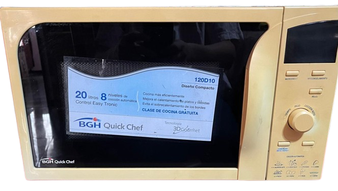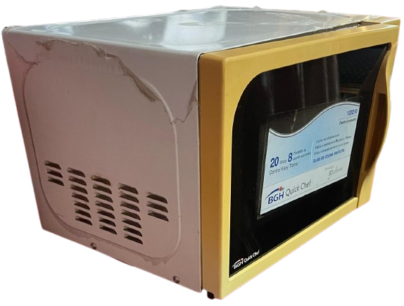 Microondas BGH usado, color amarillo, Modelo 120D10. Serie 230H9B5084 , consumo máximo 1150W, zona de Villa Luro, CABA $ 90.000.